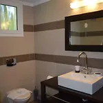 Serenity Luxury Villa, Skiathos, som har uteplats och mathörna, erbjuder strykutrustning, strykjärn med strykbräda och luftkonditionering samt satellit-TV. Inredningen består av soffa och arbetsbord samt sten eldstad. I badrummet finns även ett spabadkar, en duschkabin och en separat toalett. Hårtorkar, badrockar och badmössor erbjuds också.